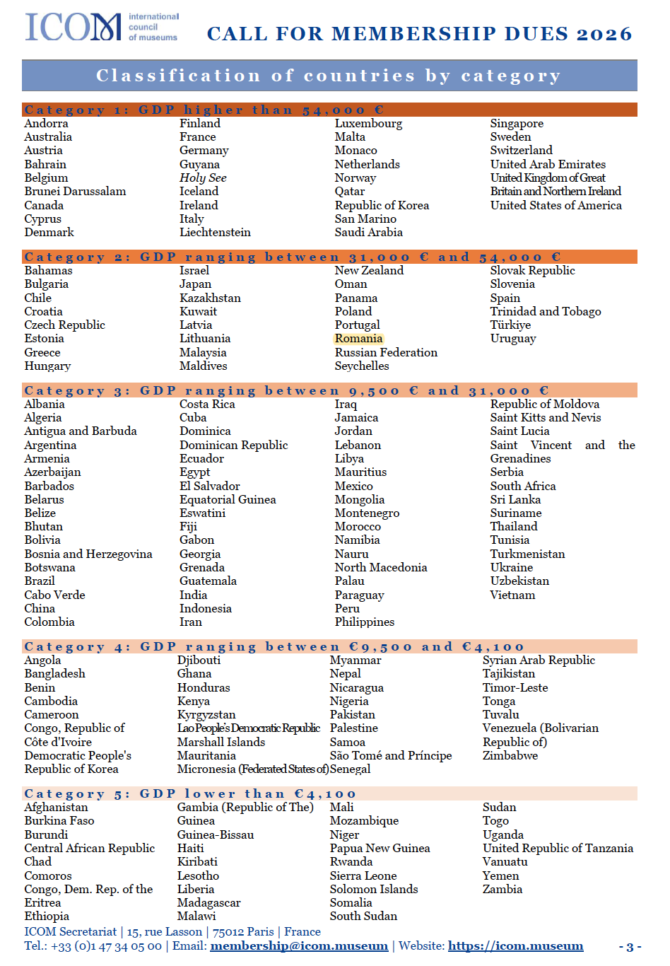 Anunț privind plata cotizațiilor anuale de membru ICOM: